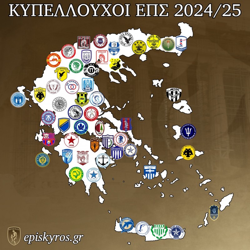 Έναν πολύ κατατοπιστικό και ωραίο χάρτη με τους 53 Κυπελλούχους στις αντίστοιχες Ενώσεις Ποδοσφαιρικών Σωματείων ανά την Ελλάδα δημοσίευσε η σελίδα "ΕΠΙΣΚΥΡΟΣ" στο Facebook.