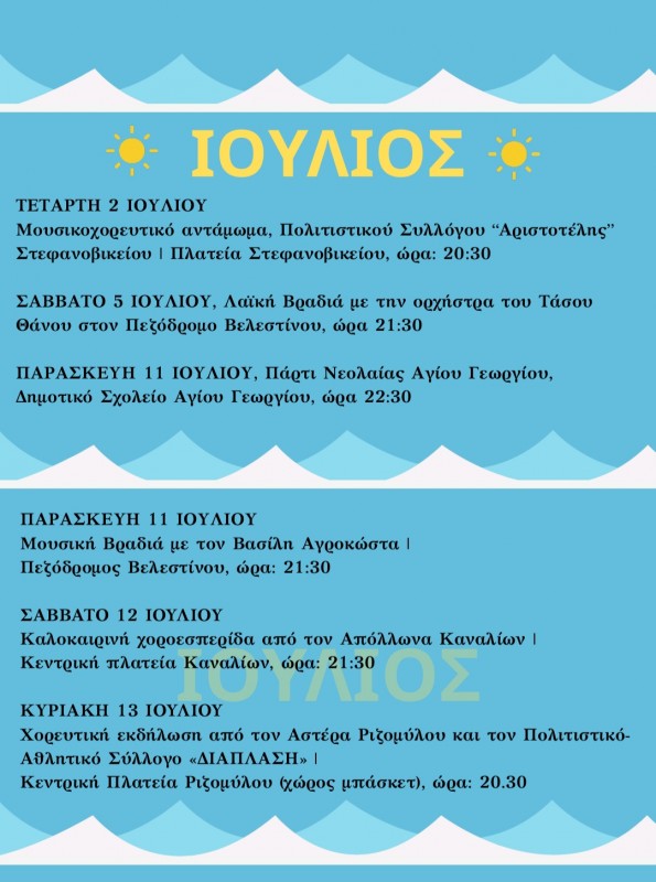 Ανακοινώθηκε το πρόγραμμα εκδηλώσεων του καλοκαιριού