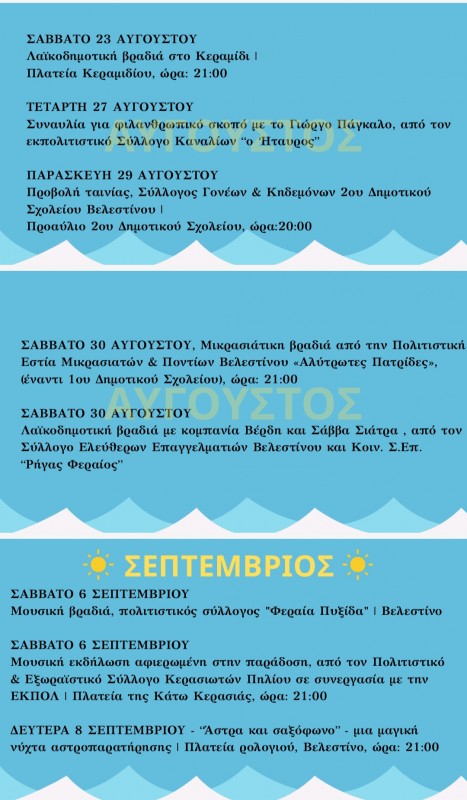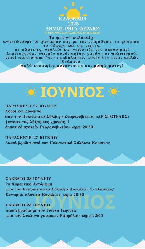 Το Πρόγραμμα Καλοκαιρινών Εκδηλώσεων στον Δήμο Ρήγα Φεραίου