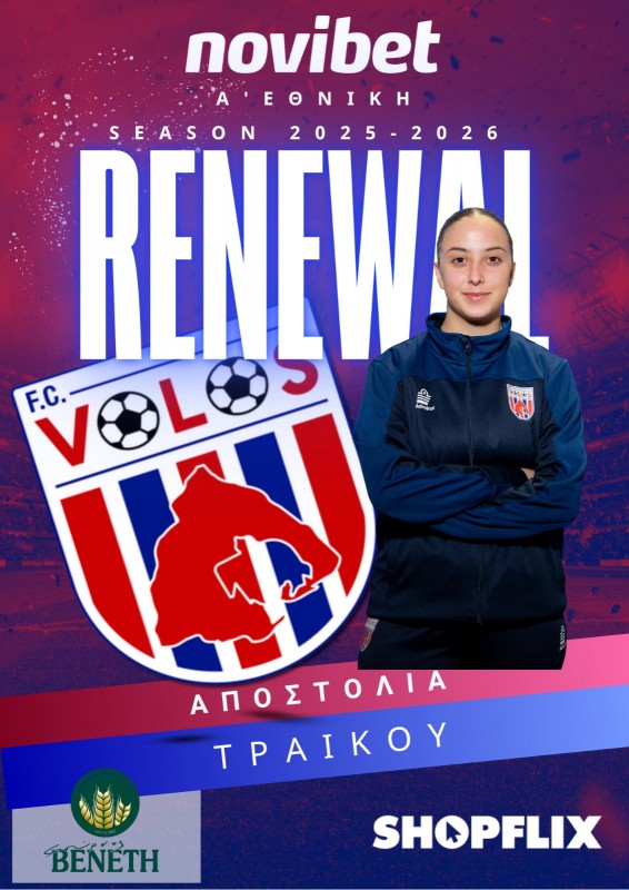Η Διοίκηση του Βόλου είναι στην ευχάριστη θέση να ανακοινώσει την ανανέωση της συνεργασίας με την δυναμική αμυντικό Αποστολία Τράικου.