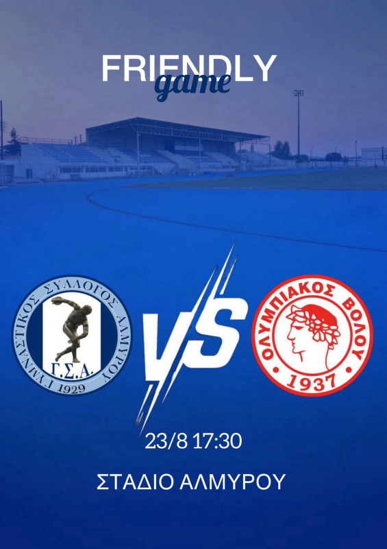 Ο Γ. Σ. Αλμυρού το Σάββατο (23/8 – 17:30) υποδέχεται τον Ολυμπιακό Βόλου για το δεύτερο φιλικό παιχνίδι στο πλαίσιο της προετοιμασίας, στο Στάδιο Αλμυρού, Αθ. Ραγάζος.