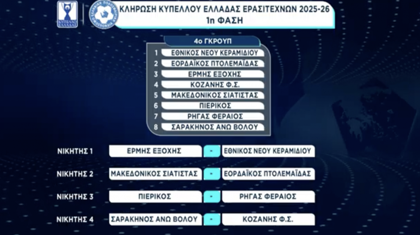 Αναλυτικά τα ζευγάρια στο 4ο γκρουπ του Κυπέλλου Ερασιτεχνών.