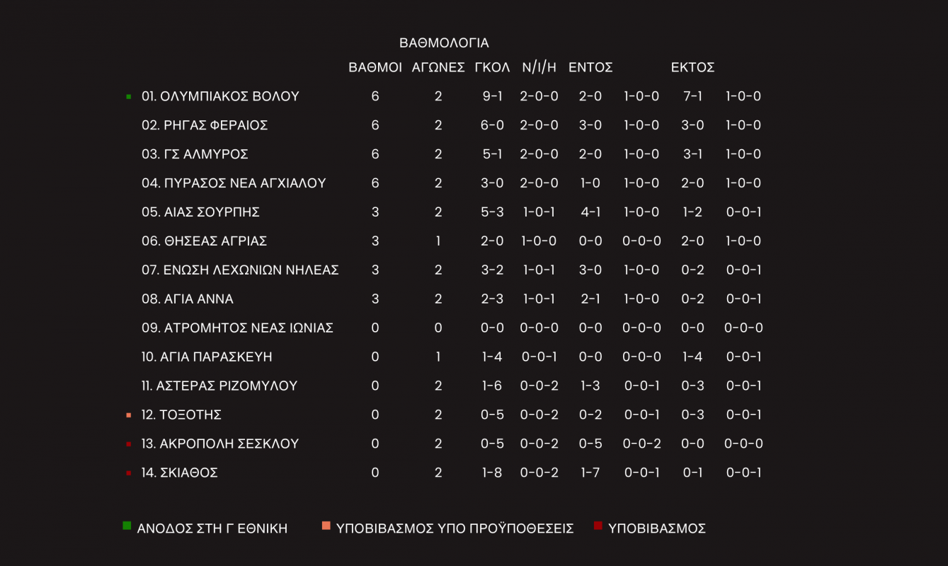 Με τρία ωραία γκολ στην επανάληψη, ο Ρήγας Φεραίος των 10 παικτών νίκησε δίκαια με σκορ 3-0 τον Αστέρα Ριζόμυλου ξεκινώντας με "2χ2" το φετινό πρωτάθλημα, σε αντίθεση με τους φιλοξενούμενους που γνώρισαν την δεύτερη διαδοχική ήττα.