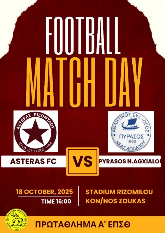 Η "Match Day" αφίσα του Αστέρα με ενημέρωση για τον αγώνα: