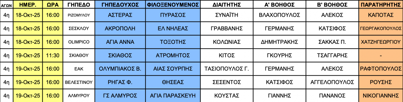 Α` ΕΠΣΘ - 4η αγωνιστική