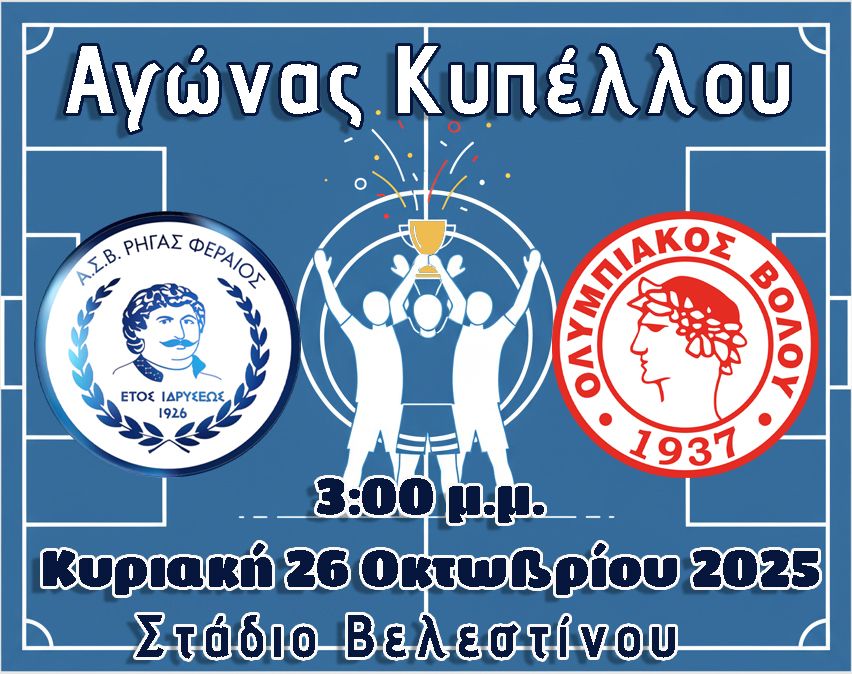Η ομάδα μας καλείται να υπερασπιστεί τον τίτλο της στον θεσμό του Κυπέλλου, αντιμετωπίζοντας τον Ολυμπιακό Βόλου σε ένα ντέρμπι γεμάτο ένταση, πάθος και ΙΣΤΟΡΙΑ!