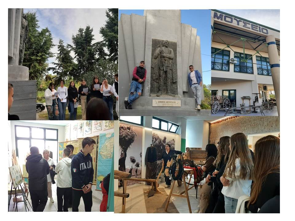 Στη συνέχεια το σχολείο επισκέφτηκε το Μουσείο Γεωργικών Εργαλείων & Παραδοσιακής Τεχνολογίας και ξεναγήθηκε από την Υπεύθυνη του Μουσείου κ. Βασιλική Τράκη και την κ. Σοφία Κωστούλα, επικεντρώνοντας στα εργαλεία και τα όπλα που χρησιμοποιήθηκαν την περίοδο της κατοχής από τους κατοίκους.Με την ελπίδα ότι η Γιορτή στο πεδίο προσφέρει μια οπτική πιο άμεση και βιωματική στους μαθητές/τριες, το σχολείο θα ήθελε να ευχαριστήσει θερμά για τη συνεισφορά τους τους : Ταγματάρχη ι. Βαλωμένο & Υπολοχαγό Παρασκευόπουλο για τη συνεχή συνοδεία, παρουσία και προσφορά τους στο Στρατόπεδο Γεωργούλα στο Βόλο, καθώς και τις κ.κ. Βασιλική Τράκη και Σοφία Κωστούλα για την αναλυτική τους ξενάγηση στο Μουσείο Γεωργικών Εργαλείων στο Βελεστίνο.