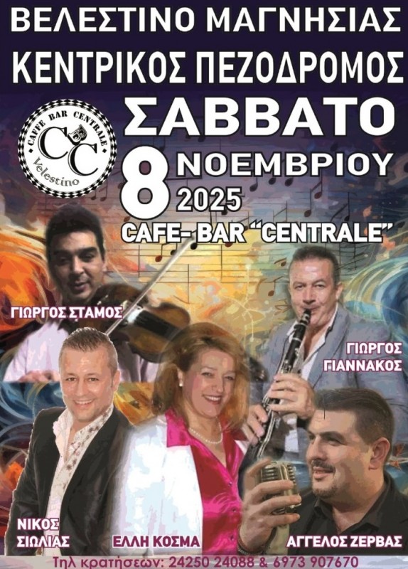 Μία μοναδική βραδιά με μουσική και χορό μέχρι πρωΐας διοργανώνει το Cafe-Bar Centrale το Σάββατο 8 Νοεμβρίου, στον πεζόδρομο Βελεστίνου.