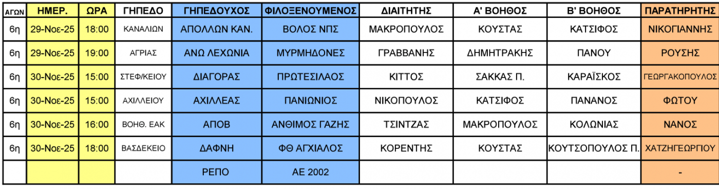 Η τοπική επιτροπή διαιτησίας της ΕΠΣ Θεσσαλίας ανακοίνωσε τους ορισμούς των διαιτητών για τους αγώνες που θα διεξαχθούν το Σαββατοκύριακο (29-30/11) σε Α`, Β` και Γ` ΕΠΣΘ.