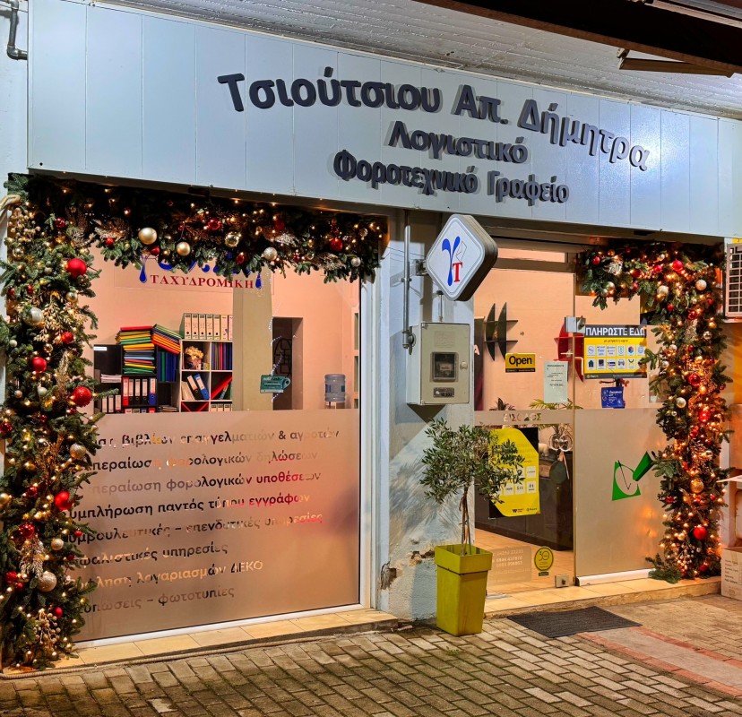 Το Λογιστικό - Φοροτεχνικό Γραφείο Δήμητρας Απ. Τσιούτσιου στο Βελεστίνο σας εύχεται Καλά Χριστούγεννα, Χρόνια Πολλά και ευτυχισμένο το νέο έτος με Υγεία!