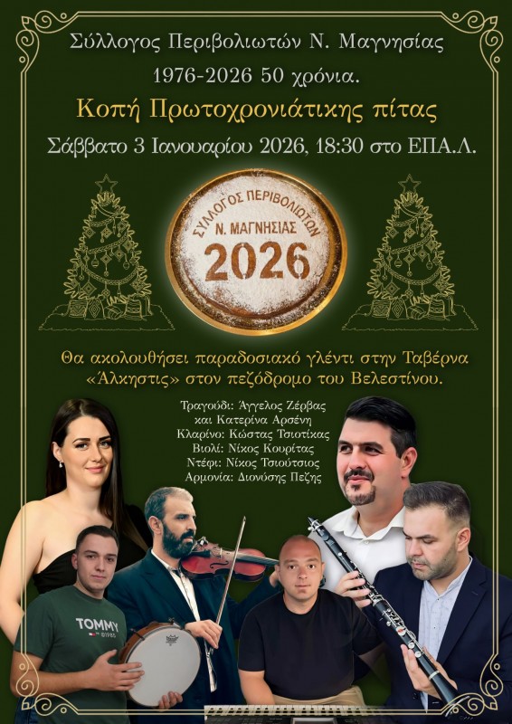 Το Σάββατο 3 Ιανουαρίου στην αίθουσα εκδηλώσεων του ΕΠΑΛ Βελεστίνου θα πραγματοποιηθεί η κοπή πίτας για τον Σύλλογο Περιβολιωτών Ν. Μαγνησίας.