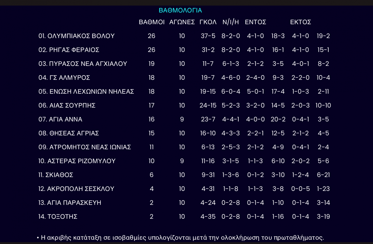 Η ΕΠΣΘ Θεσσαλίας ανακοίνωσε σήμερα το απόγευμα το πρόγραμμα για την 11η στροφή του πρωταθλήματος με σημαντικές αναμετρήσεις για την κορυφή αλλά... και την ουρά του πρωταθλήματος.