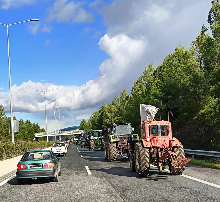 Το κομβόι τρακτέρ από το Μπλόκο Νίκαιας