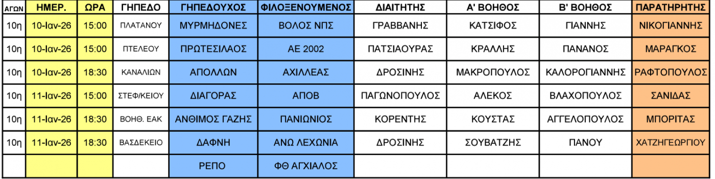 Δείτε τους ορισμούς για τους αγώνες (9-11/1) στις τρεις τοπικές κατηγορίες της ΕΠΣ Θεσσαλίας.