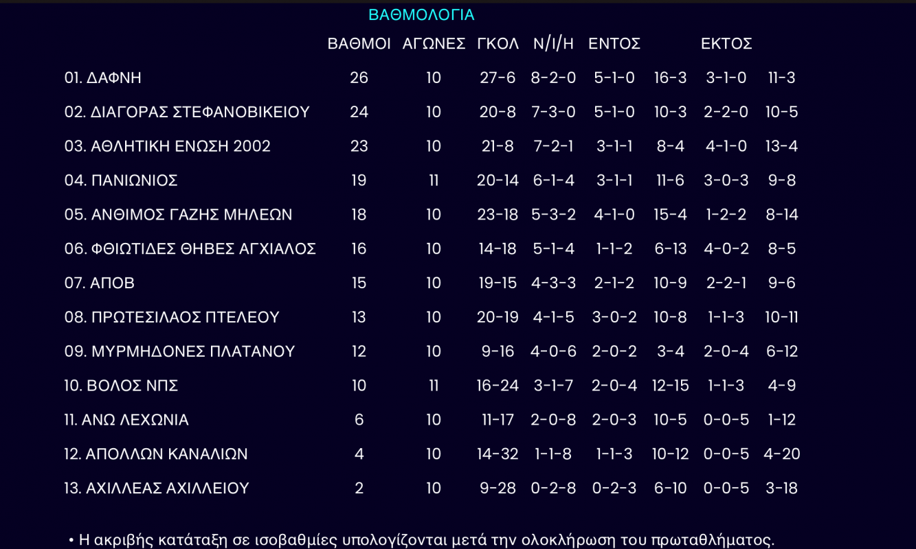 Η βαθμολογία μετά την 11η αγωνιστική στην Β΄ΕΠΣΘ.