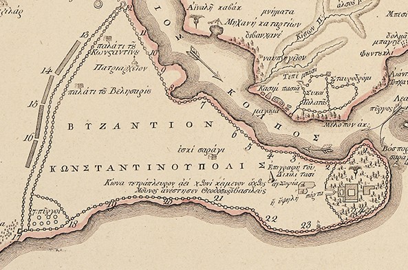 Ενδιαφέρον έχει να τονισθεί ότι ο Ρήγας Βελεστινλής στην μεγαλειώδη δωδεκάφυλλη Χάρτα της Ελλάδος, έχει το τοπογραφικό διάγραμμα της Κωνσταντινουπόλεως καθώς και τα σχετικά με τον Βόσπορο με τα αρχαία ελληνικά τοπωνύμια και εκείνα της εποχής του, τα οθωμανικά.