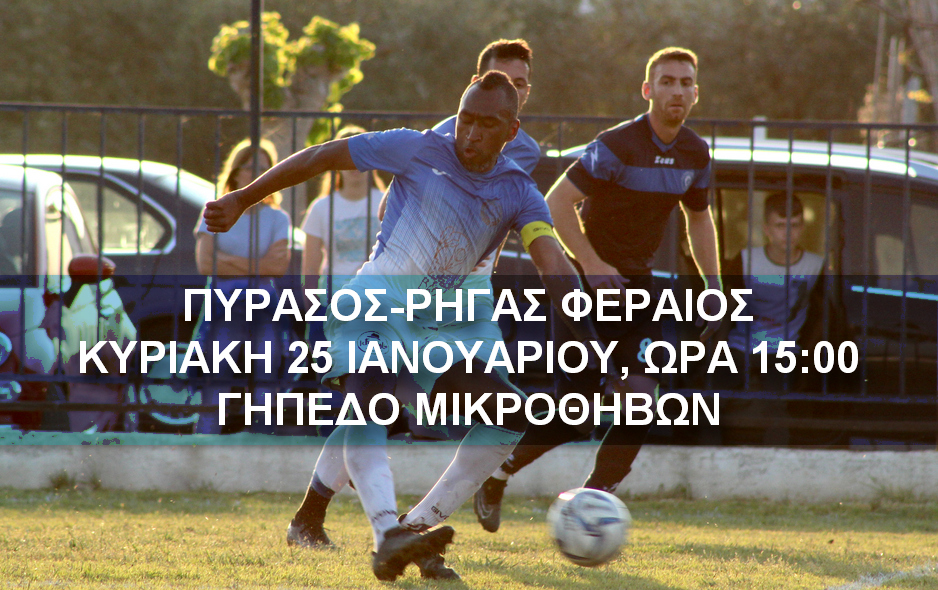 Στο γήπεδο των Μικροθηβών το οποίο χρησιμοποιούν προσωρινά οι ομάδες της Αγχιάλου, ο Ρήγας Φεραίος φιλοξενείται την ερχόμενη Κυριακή στις 3 το μεσημέρι από τον Πύρασο, με αποκλειστικό στόχο τη νίκη και την διατήρηση του συλλόγου στην κορυφή της βαθμολογίας.