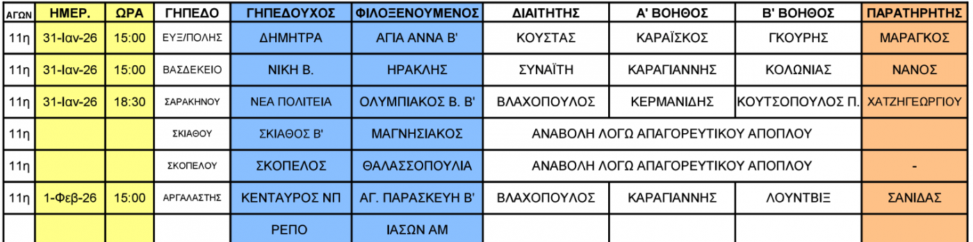 Γ` ΕΠΣΘ - 11η αγωνιστική
