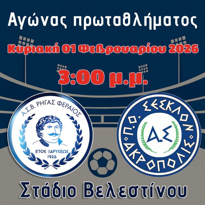 - Αναμέτρηση: Ρήγας Φεραίος vs Ακρόπολη Σέσκλου