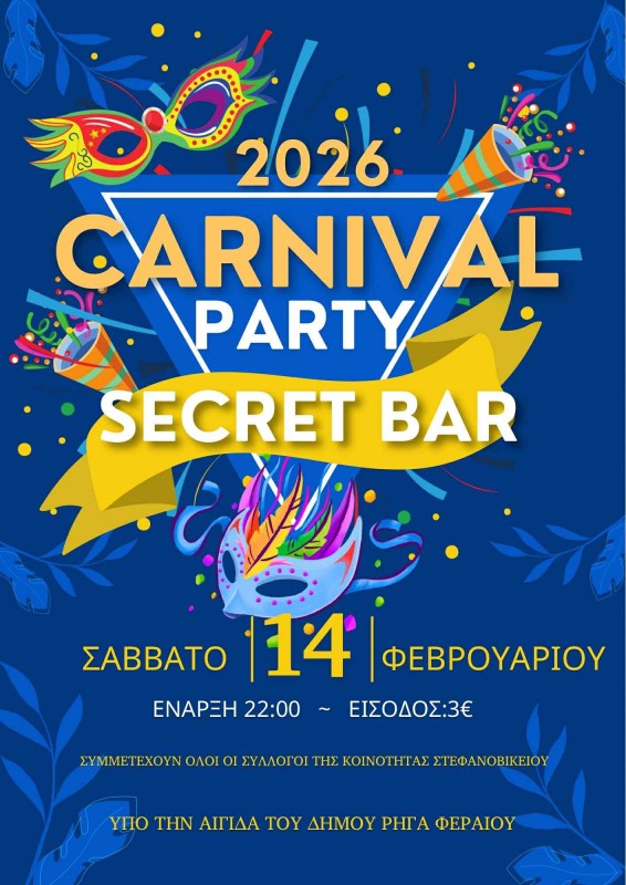 Η οργανωτική επιτροπή "Καρναβάλι Στεφανοβικείου" σας καλεί στο πιο ξέφρενο αποκριάτικο πάρτι.