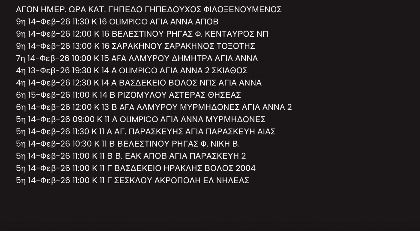 Η ΕΠΣ Θεσσαλίας έκανε γνωστό το πρόγραμμα για τους αγώνες Ακαδημιών που θα διεξαχθούν το διάστημα 13-15 Φεβρουαρίου.