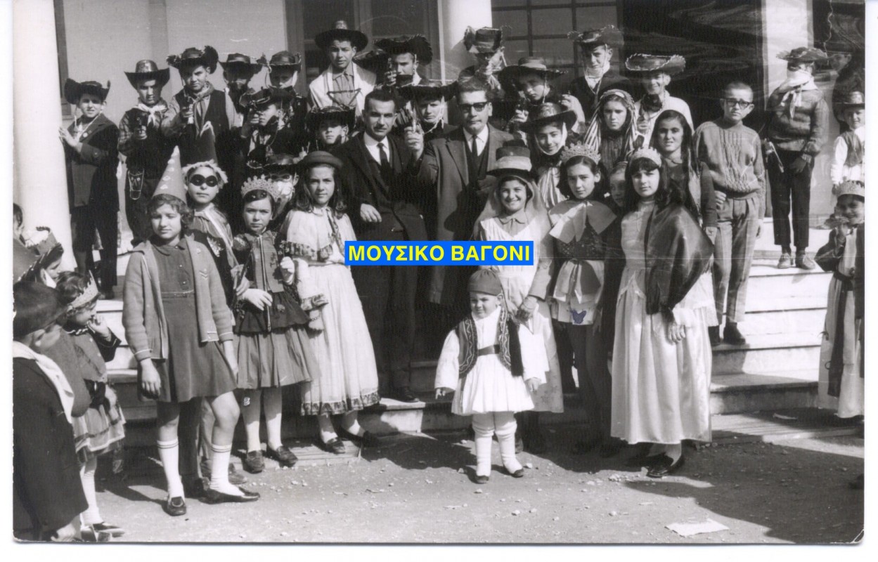Όπως σημειώνει ο φίλος της σελίδας, κ. Αντώνιος Φραγκούλης που βρίσκεται ως μαθητής στη φωτογραφία, εικονίζονται πιθανώς, μεταξύ άλλων: Οι δάσκαλοι Κων/νος Ψαχούλας και ο κ. Μανίκας, μάλλον με τον γιο του που είναι ντυμένος τσολιάς.