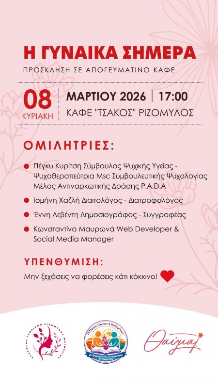 Η Γυναίκα Σήμερα - Εκδήλωση στον Ριζόμυλο με Ιερό Σκοπό