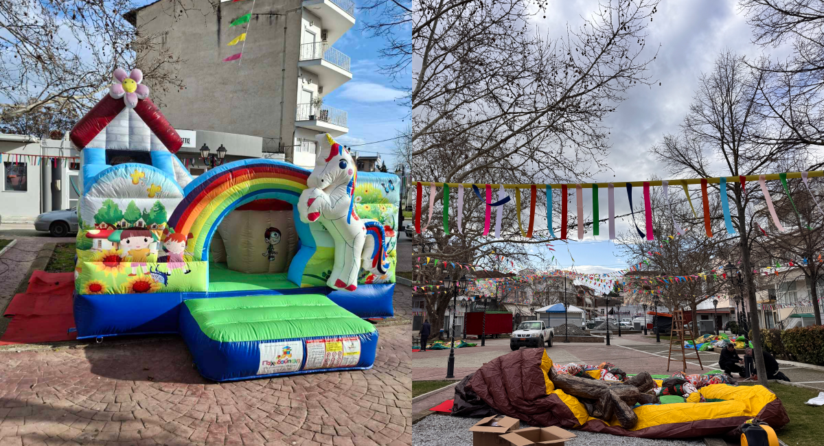 Ηδη στην πλατεία Ρήγα Φεραίου διαμορφώνεται η "Παιχνιδούπολη", το θεματικό πάρκο που θα λειτουργήσει μέχρι και την Δευτέρα με φουσκωτά, διαδραστικά παιχνίδια, μουσικοκινητικές δράσεις, δοκιμασίες τύπου Survivor, ξυλοπόδαρους, ζογκλέρ, διαγωνισμούς και αμέτρητες εκπλήξεις δημιουργούν το πιο χαρούμενο αποκριάτικο σκηνικό στην καρδιά της πόλης.