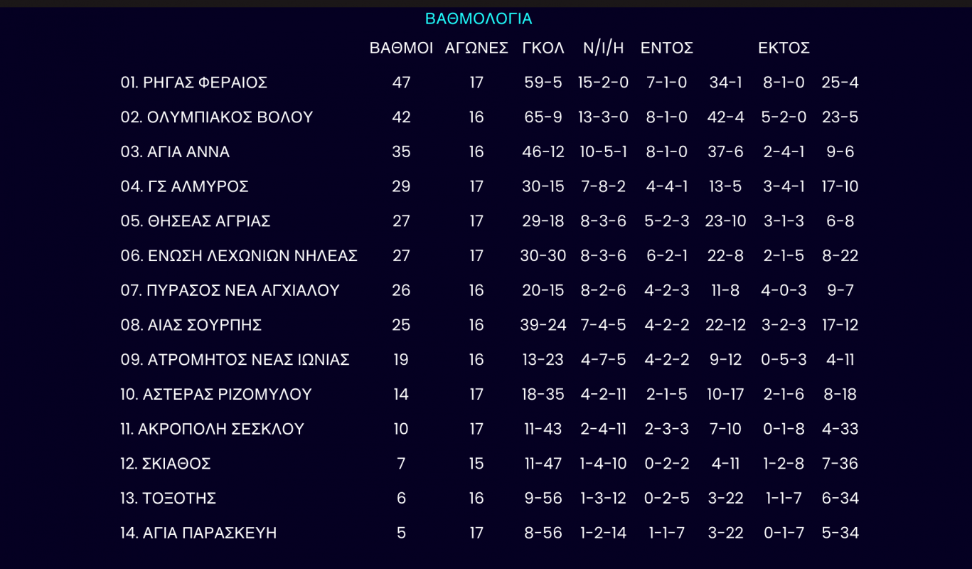Με την... γρανγκινιολική νίκη στην Αγριά, οι Κυανόλευκοι βρίσκονται στο "+5" από τον Ολυμπιακό Βόλου που αγωνίζεται σήμερα απέναντι στον Αίαντα στην Σούρπη.