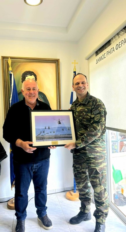 Συνάντηση με τον διοικητή της 1ης Ταξιαρχίας Αεροπορίας Στρατού, ταξίαρχο, Αθανάσιο Δημητρίου είχε ο δήμαρχος Ρήγα Φεραίου, Δημήτρης Νασίκας, στο γραφείο του.