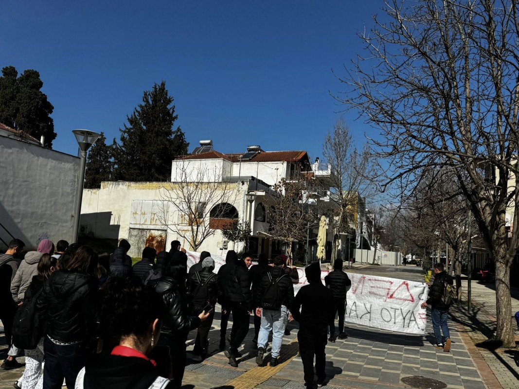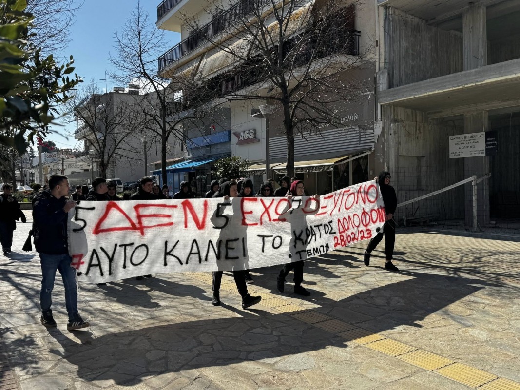 Πορεία με πανό και συνθήματα, τρία χρόνια μετά τη σιδηροδρομική τραγωδία των Τεμπών, πραγματοποίησαν μαθητές από το Πρότυπο ΕΠΑΛ Βελεστίνου το μεσημέρι της Παρασκευής.