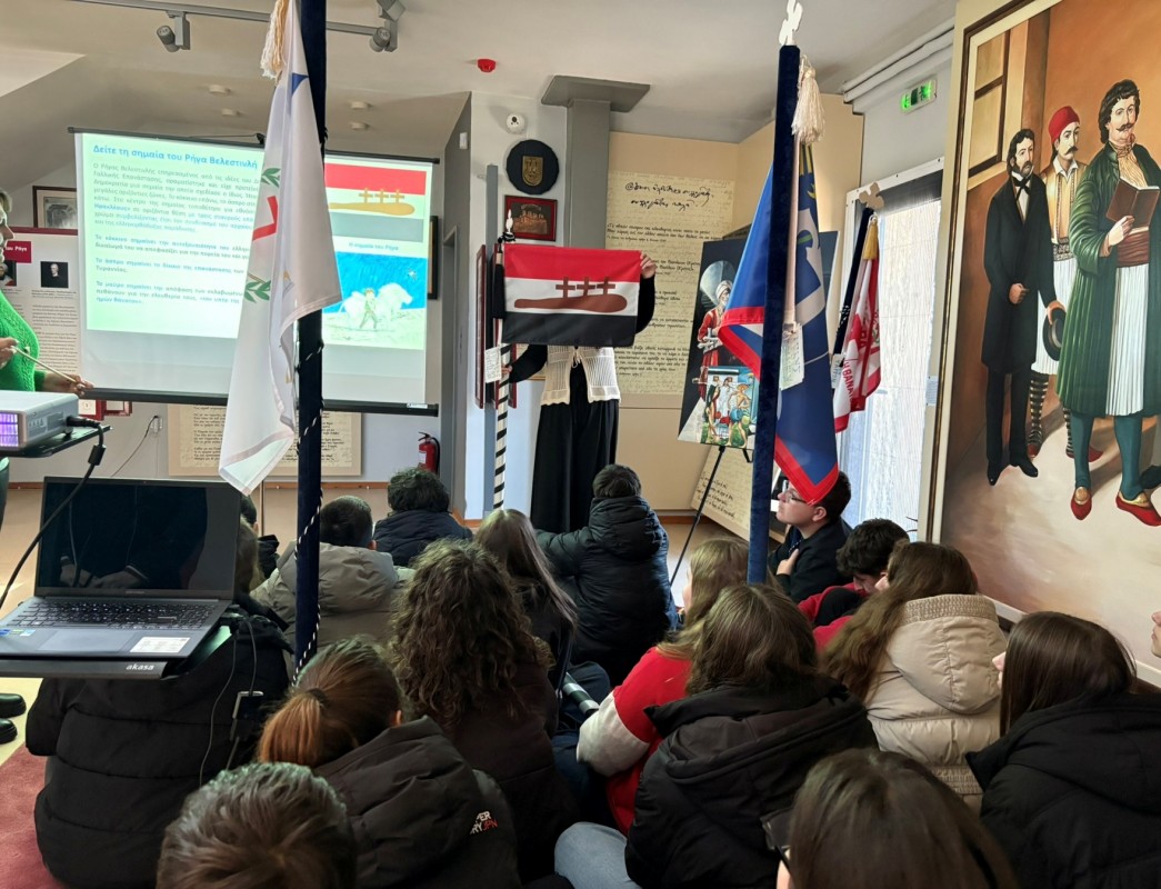 Ξενάγηση των μαθητών του Γυμνασίου Βελεστίνου στο πλούσιο αρχειακό και εκθεσιακό υλικό που αφορά τη ζωή και το έργο του Ρήγα Βελεστινλή και ευχαριστίες προς τους υπευθύνους