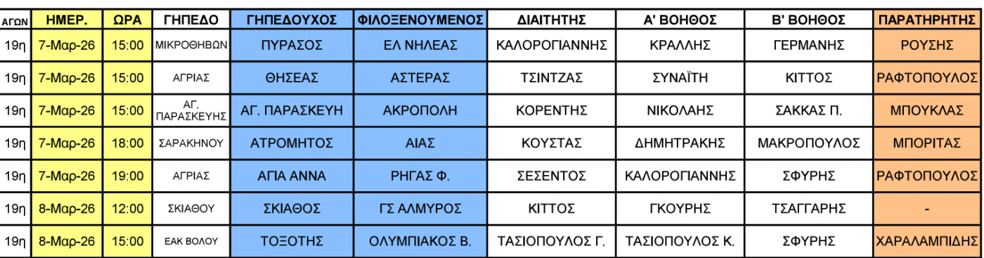 Σεσέντος με βοηθούς τους Καλορογιάννη και Σφυρή στον αγώνα του Ρήγα με την Αγία Άννα στην Άγρια - Τασιόπουλος στο Τοξότης - Ολυμπιακός Βόλου