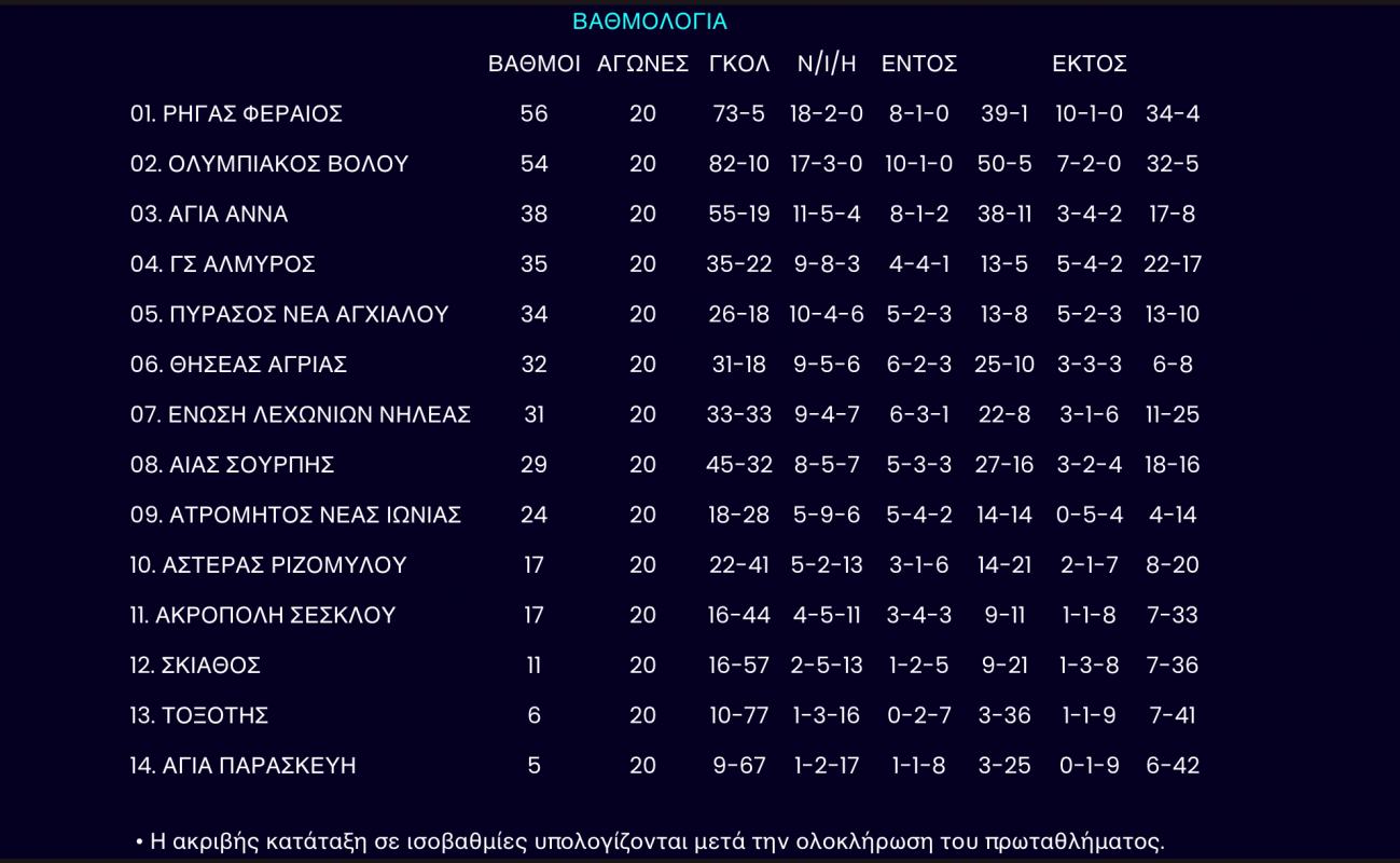 Δημοτικό Στάδιο Βελεστίνου (16:00) / Ρήγας Φεραίος - Ολυμπιακός Βόλου