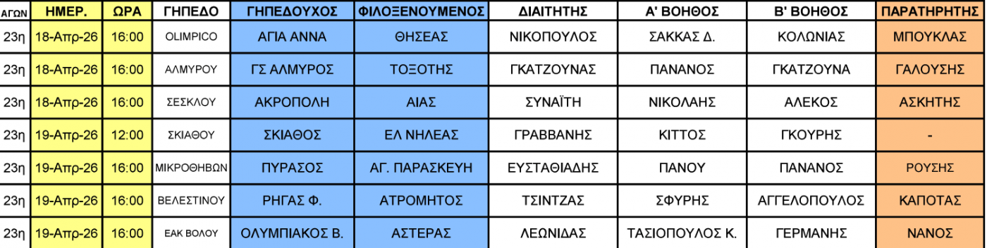 Α` ΕΠΣΘ - 23η αγωνιστική