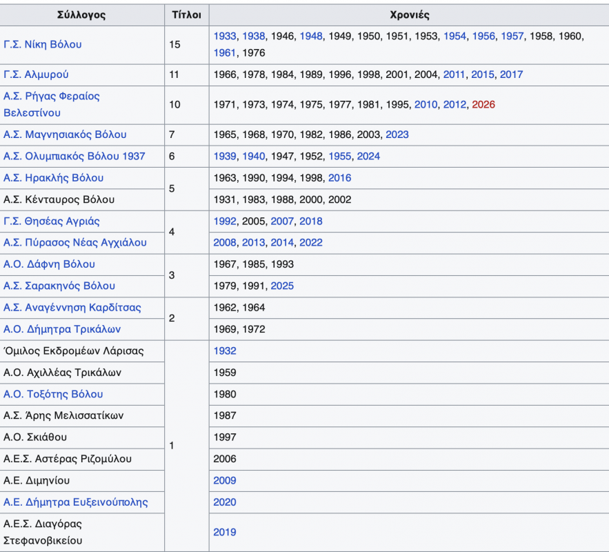 Από την ομαδάρα της δεκαετίας 70` που αγωνίστηκε και στην Β` Εθνική ως τους αήττητους του 1981, τον τίτλο και την άνοδο στην τότε δυνατή Δ` Εθνική το 1995, τα δύο πρωταθλήματα του 2010 και του 2012 με το τελευταίο να οδηγεί τους Κυανόλευκους στη συνέχεια σε πέντε χρόνια ισχυρής παρουσίας στην Γ` Εθνική και το φετινό που εκτός από την άνοδο στην τρίτη τη τάξει Εθνική κατηγορία, έχει ξεχωριστή σημασία καθώς επιτεύχθηκε στα 100 χρόνια από την ίδρυση του συλλόγου και απέναντι σε ένα μεγάλο σωματείο όπως ο Ολυμπιακός Βόλου.