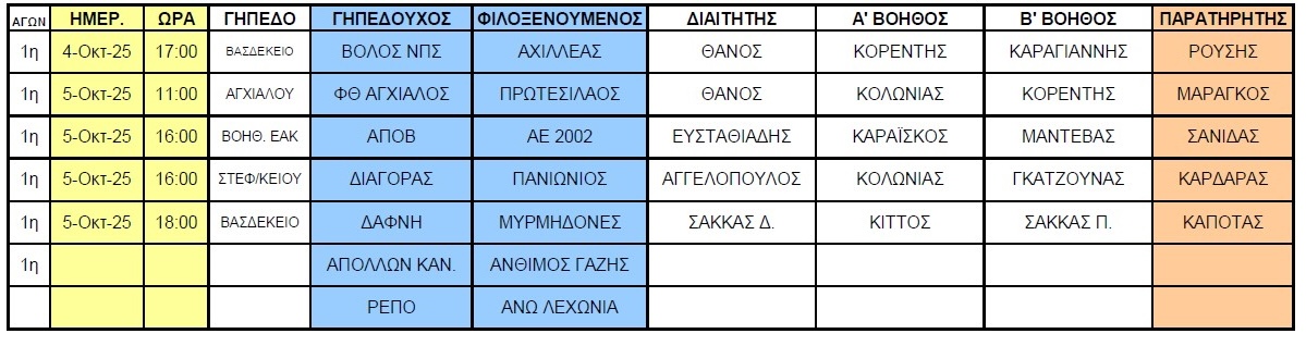 Η τοπική επιτροπή διαιτησίας της ΕΠΣ Θεσσαλίας ανακοίνωσε πριν λίγο τους ορισμούς των διαιτητών για τους αγώνες που θα διεξαχθούν το Σαββατοκύριακο (4-5/10) σε Α` και Β` ΕΠΣΘ.
