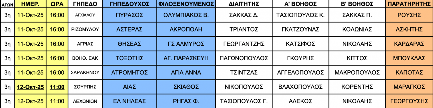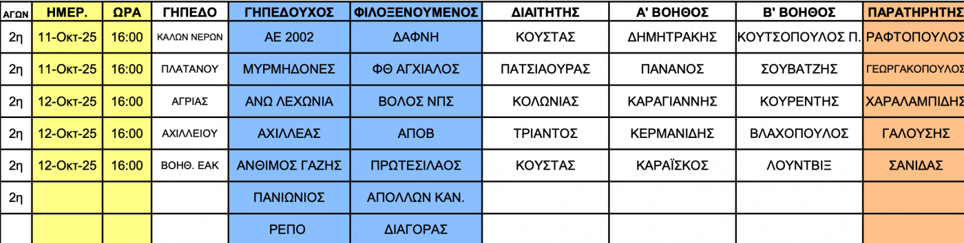 Η τοπική επιτροπή διαιτησίας της ΕΠΣ Θεσσαλίας ανακοίνωσε τους ορισμούς των διαιτητών για τους αγώνες που θα διεξαχθούν το Σαββατοκύριακο (11-12/10) σε Α` και Β` ΕΠΣΘ.