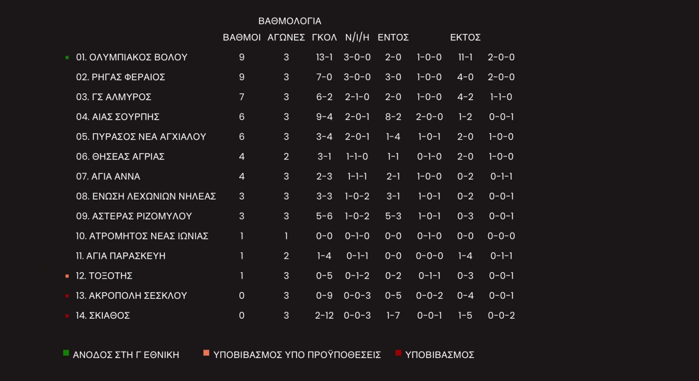 Εντός με τον Αίαντα Σούρπης ο έτερος πρωτοπόρος της κατάταξης, Ολυμπιακός Βόλου. Υποδέχεται τον Πύρασο ο Αστέρας.