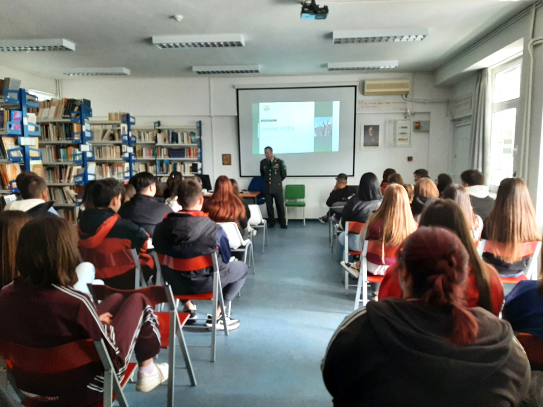 Στο πλαίσιο του σχολικού επαγγελματικού προσανατολισμού, η 1η ΣΤΡΑΤΙΑ/EU-OHQ πραγματοποίησε επίσκεψη και ενημέρωση στους μαθητές/τριες του ΓΕΛ Βελεστίνου, κατόπιν πρόσκλησης, την Πέμπτη 16 Οκτωβρίου 2025, με θέμα τις Στρατιωτικές Σχολές και τη σταδιοδρομία ως Στελέχη στο Στρατό Ξηράς.