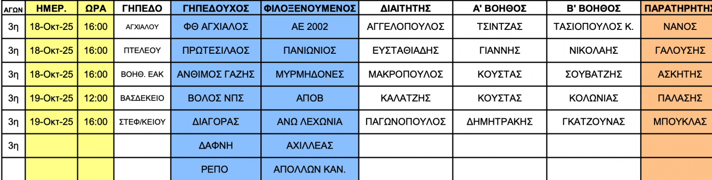 Η τοπική επιτροπή διαιτησίας της ΕΠΣ Θεσσαλίας ανακοίνωσε τους ορισμούς των διαιτητών για τους αγώνες που θα διεξαχθούν το Σαββατοκύριακο (18-19/10) σε Α`, Β` και Γ` ΕΠΣΘ.