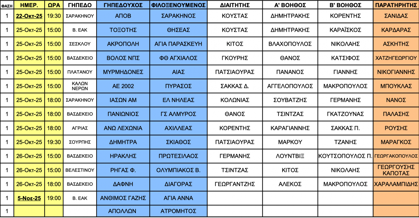Ο ρέφερι Κωνσαντίνος Τσίντζας με βοηθούς τους Κίτο και Νικολαη θα διευθύνουν την μεγάλη αναμέτρηση ανάμεσα σε Ρήγα Φεραίο και Ολυμπιακό Βόλου, την ερχόμενη Κυριακή (15:00) στο Βελεστίνο.