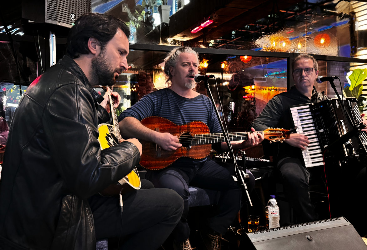 Ο πολύ γνωστός και Περιβολιώτης Γιάννης Λίταινας στην κιθάρα και στο τραγούδι, ο Μανώλης Ντάλλας με το ακορντεόν και τα δικά του τραγούδια και ο Γιώργος Κολτσίδας στο μπουζούκι, πρόσφεραν στους θαμώνες του καταστήματος μία ξεχωριστή βραδιά, από αυτές που έχεις να θυμάσαι ότι έλαβε χώρα, κάποτε, έναν Νοέμβρη μήνα στο Βελεστίνο.