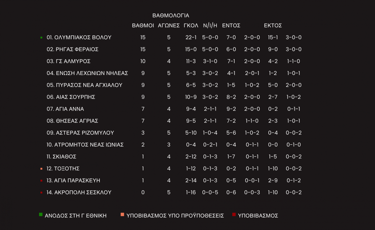 Παραμένει στην πρώτη θέση με συγκάτοικο τον Ολυμπιακό Βόλου ο Ρήγας Φεραίος