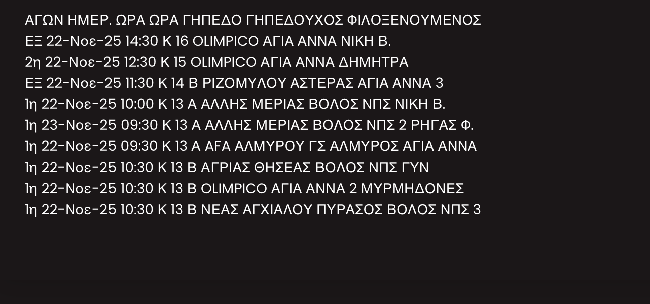 Δείτε αναλυτικά την δράση στα τμήματα υποδομών με την ΕΠΣ Θεσσαλίας να ανακοινώνει τη διεξαγωγή των αγώνων για το ερχόμενο Σαββατοκύριακο (22-23/11).