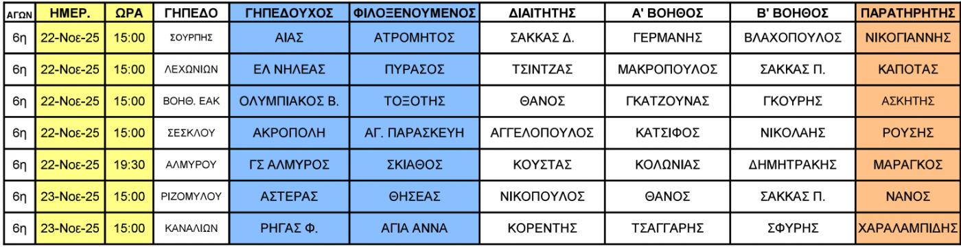Α` ΕΠΣΘ - 6η αγωνιστική