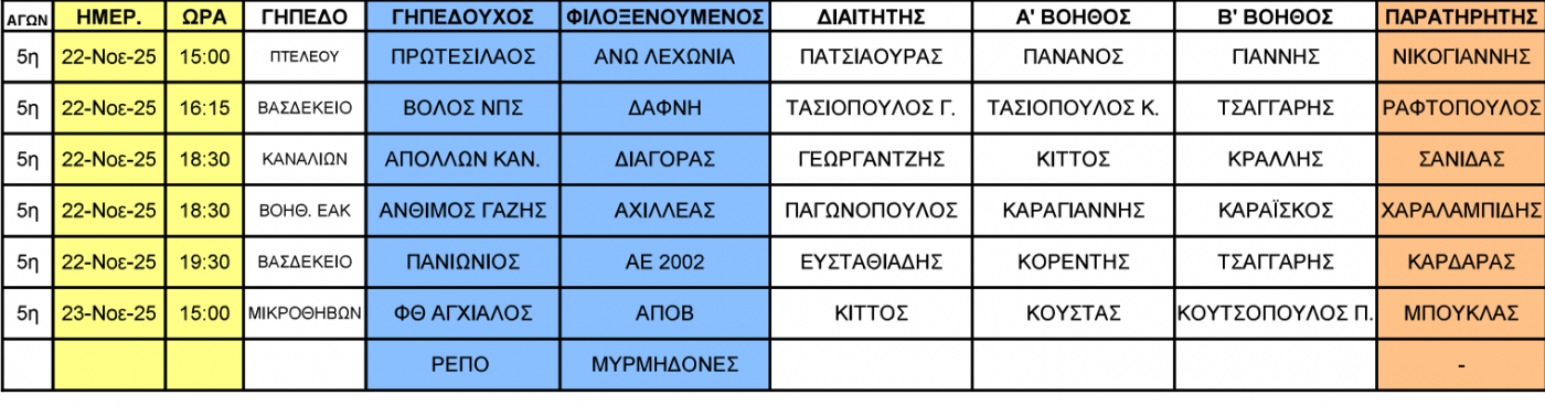 Η τοπική επιτροπή διαιτησίας της ΕΠΣ Θεσσαλίας ανακοίνωσε τους ορισμούς των διαιτητών για τους αγώνες που θα διεξαχθούν το τριήμερο (21-23/11) σε Α`, Β` και Γ` ΕΠΣΘ.