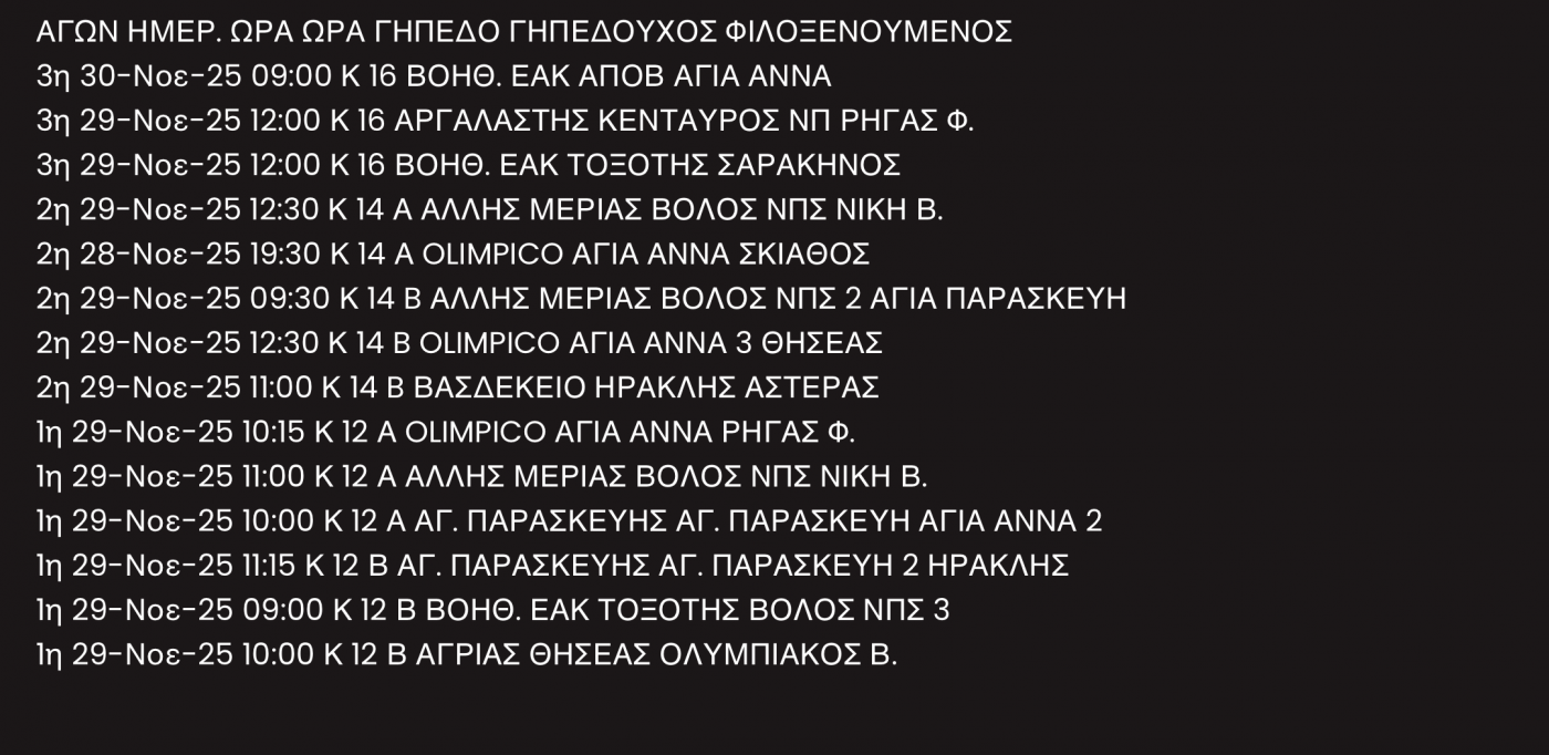 Δείτε αναλυτικά την δράση στα τμήματα υποδομών με την ΕΠΣ Θεσσαλίας να ανακοινώνει τη διεξαγωγή των αγώνων για το ερχόμενο Σαββατοκύριακο (29-30/11).