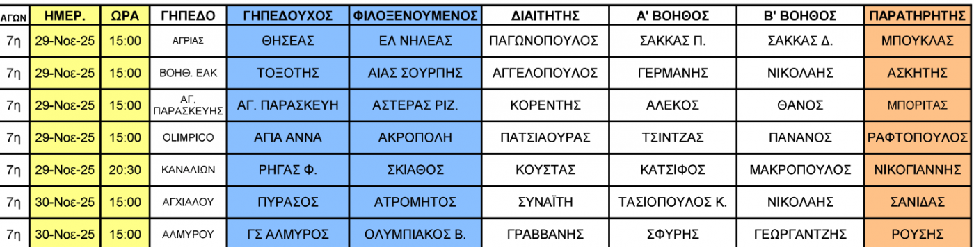 Η τοπική επιτροπή διαιτησίας της ΕΠΣ Θεσσαλίας ανακοίνωσε τους ορισμούς των διαιτητών για τους αγώνες που θα διεξαχθούν το Σαββατοκύριακο (29-30/11) σε Α`, Β` και Γ` ΕΠΣΘ.