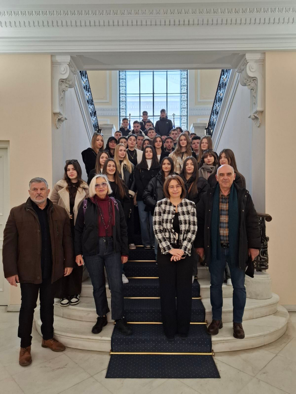 Στο ιστορικό Βουκουρέστι, οι μαθητές/τριες και οι συνοδοί τους επισκέφτηκαν πρώτα το άγαλμα του Ρήγα, στην Ελληνική Πρεσβεία όπου τους υποδέχθηκε η Πρέσβειρα Λιλή Γραμματίκα και ο πρόξενος του Εμπορικού Επιμελητηρίου Βουκουρεστίου.